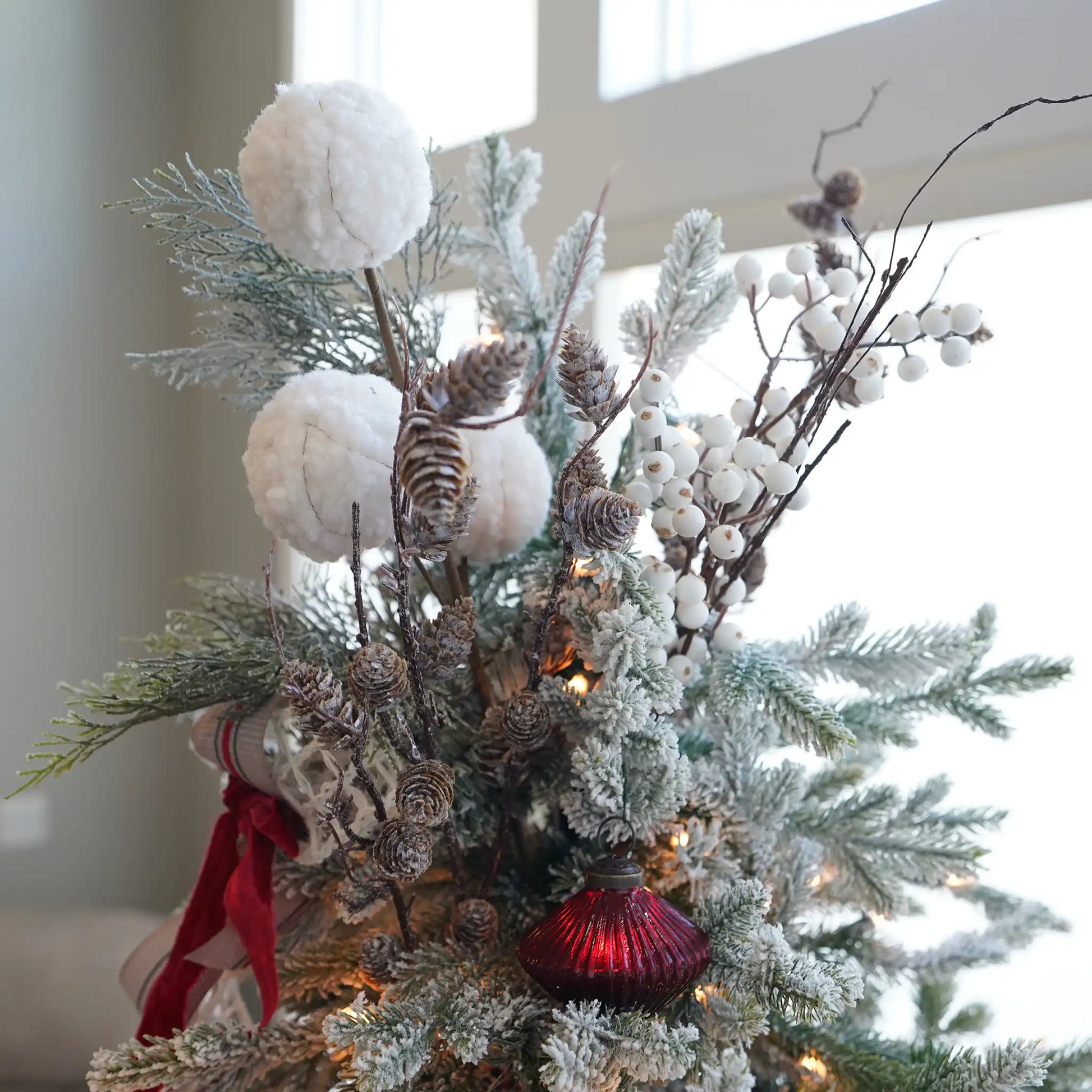 Create a timeless holiday look with our Snowberry Pyne Kit. Featuring red, white, cream, and a touch of green, this set includes perfectly coordinated ornaments, sprays, and ribbon for effortless decorating. With a balance of cozy charm and refined style, the Snowberry Pyne Kit transforms your tree into a warm, inviting centerpiece—beautifully reminiscent of the season’s most cherished traditions.